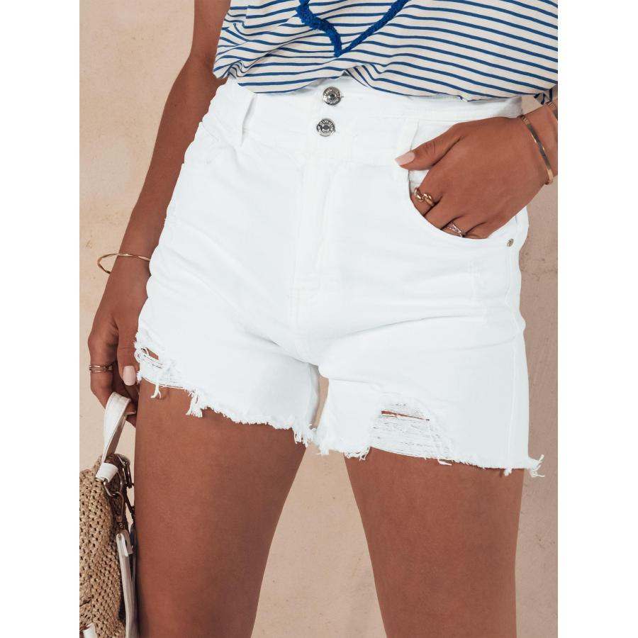 Női farmer rövidnadrág fehér színben, kiváló minőségű anyagból, a legújabb divatirányzatok szerint tervezve.